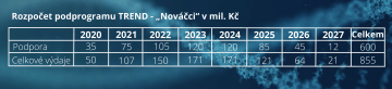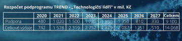 U Podprogramu 1 „Technologičtí lídři“ je omezena maximální výše podpory na projekt (v souhrnu za všechny účastníky) a intenzita podpory nepřesáhne 70 % způsobilých nákladů. Předběžné parametry 6. veřejné soutěže, která má být vyhlášena 27.4.2022, lze nalézt zde. Rozpočet podprogramu znázorňuje následující tabulka.